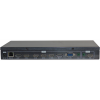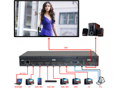 通过遥控器、机箱按键、控制软件或者中控可以切换任何一个输入信号转换成HDMI信号输出至显示单元,并实现影、音同步切换;